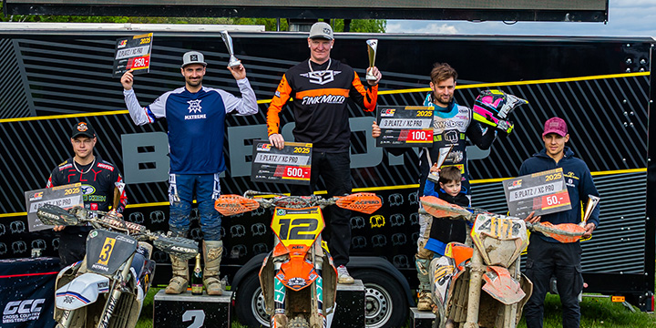 In der Königsklasse der XC Pro war es Chris Gundermann vom Team Finkmoto Holzgerlingen, der ein wahres Feuerwerk abbrannte. Mit einem perfekten Start katapultierte er sich direkt an die Spitze, fuhr souverän vorneweg und sicherte sich verdient den Tagessieg – und damit auch die Gesamtführung in der Meisterschaft.