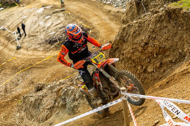 Robert Scharl (Mxtreme Racing) und Edward Hübner (Fortyeight-Racing) komplettierten das Podium. Für Vorlaufsieger Leonard Koch verlief der Tag zunächst unglücklich – ein Startcrash warf ihn weit zurück. Doch Koch zeigte Kämpferherz und fuhr mit einer starken Aufholjagd noch auf Platz vier. Tim Kühner wurde Fünfter, während Titelverteidiger Yanik Spachmüller bei seinem Comeback mit Rang sechs ein solides Ergebnis einfuhr.