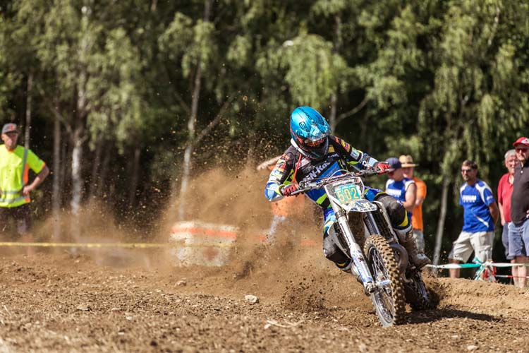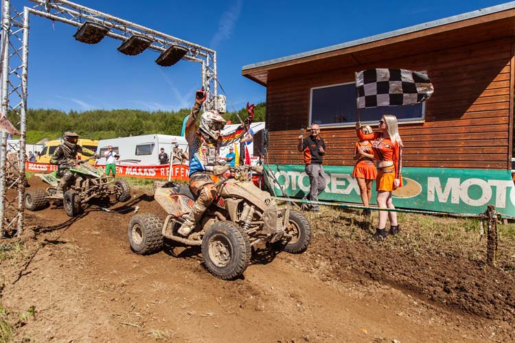 Ein Blick auf das feine Starterfeld des XC Supersprint versprach einiges an Race Action für das letzte Rennen des Wochenendes. Neben den Deutschen Supersprint Dauerbrennern, Chris Gundermann, Michael Kartenberg, Mike Hartmann, Roland Diepold und Tim Pleyer mischten sich zwei internationale MX Cracks in die erste Startreihe. Blake Gutzeit aus Südafrika und Kade Walker aus Kanada hatten zum ersten Mal die GCC Startnummer auf dem Motorrad angebracht. Nach den ersten beiden Runden war es zunächst Mike Hartmann, der als erster Fahrer durch die Zählstelle kam, vor Kade Walker und Michael Kartenberg. Gundermann, der ja vorher bereits das Rennen der Pros gewonnen hatte, lag in Lauerstellung auf Platz vier, rund 17 Sekunden hinter der Spitze. Einige Runden später musste Gundermann der Hitze Tribut zollen und fuhr völlig entkräftet aus dem Rennen. Im weiteren Verlauf des Sprintrennens, gab Mike Hartmann zwei Plätze ab, und musste Kartenberg und den schnellen Walker ziehen lassen. Der junge Kanadier setze sich an die Spitze und kämpfte nun mit Kartenberg um den Sieg. Die beiden Kontrahenten schenkten sich nichts und fuhren etwa gleichschnelle Zeiten auf der stark verkürzten Strecke in Venusberg. Walker holte sich nach 40 Minuten den Sieg vor Kartenberg und Roland Diepold, der sich noch an Hartmann vorbeischieben konnte. Platz fünf ging an Blake Gutzeit aus Südafrika.