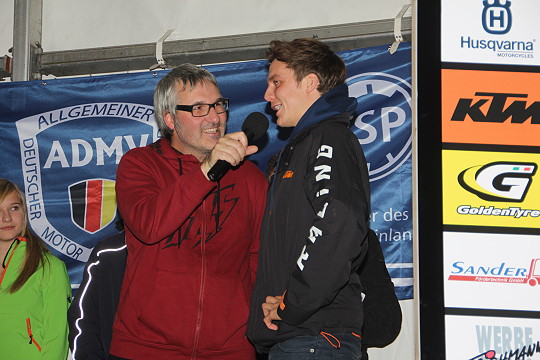 Heute Abend gab es ein Novum beim Getzenrodeo. Erstmals gab es eine öffentliche Startplatzauslosung, im bereits schon bis auf den letzten Platz gefüllten Festzelt. Als Moderatoren fungierten wie beim Prolog in Zschopau Buchholz und Schreiter. Die beiden interviewten alle Spitzenfahrer. Zusammenfassend kann man sagen das sie alle sehr gespannt auf das Rennen sind. Eine leichte Aufgabe wird es definitiv nicht werden Morgen im Getzenwald.