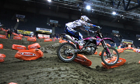 Der zweite SX1-Fahrer im Line-up des Teams ist der tschechische Meister Martin Michek, der zum ersten mal seit fünf Jahren wieder Supercross fährt: „Am ersten Tag habe ich etwas locker gemacht, mir den Track angeschaut und wollte unbedingt Stürze vermeiden. Ich hatte vor drei Wochen meinen letzten Meisterschaftslauf und seitdem nicht viel trainiert, dass ich hier Supercross fahren sollte hat sich auch erst sehr spät ergeben. Als Teamchef Jens Ihle mich angerufen hatte und fragte ob ich fahren will, konnte ich einfach nicht widerstehen, ich liebe Supercross“, erklärte Martin den ersten Tag. Am zweiten Tag lief es dann schon besser, auf der KTM schaffte Michek den Sprung ins Halbfinale, hatte dort aber einen schlechten Start und musste ins Last-Chance-Race: „Ich stürzte leider direkt am Start mit einigen anderen Piloten, verlor so natürlich viel Zeit und die Möglichkeit mich für das Finale zu qualifizieren. Für die nächsten Rennen habe ich nun etwas Zeit mich gezielt darauf vorzubereiten, ich denke ich werde Stück für Stück besser werden und dann sollte auch der Sprung ins Finale kein Problem mehr sein.“