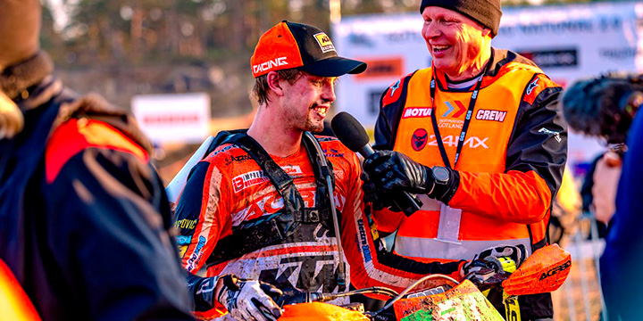 Wer würde beim GGN 2.0 ganz oben auf dem Podium stehen? Es gab viele Spekulationen über das Layout der neuen Strecke und welche Fahrer sie besonders bevorzugen würde. MXGP-Fahrer Kevin Horgmo führte die ersten drei Runden an, doch der Junioren-Weltmeister Max Ahlin erwies sich als stärkster Konkurrent auf der Herrenseite, während die norwegische WMX-Fahrerin Martine Hughes das Frauenrennen souverän für sich entschied. Martine führte das Rennen vom Start bis zur Ziellinie an.