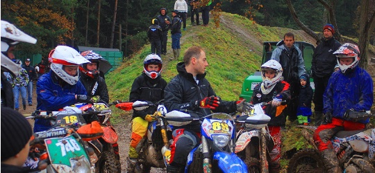 Trotz sehr schlechten Wetter hatten sich neben den Fahrern auch einige Zuschauer eingefunden um die Tipps vom Meister anzuhören.