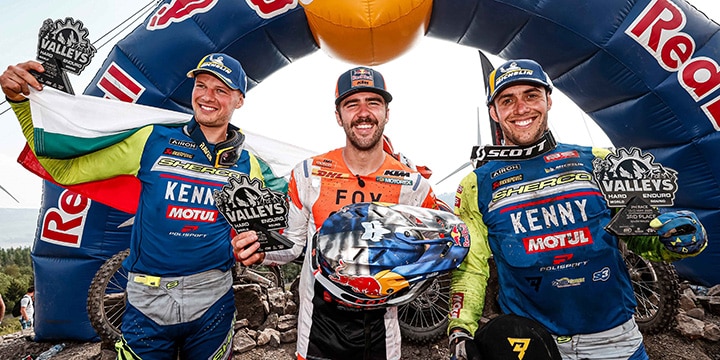 Das erste Rennen der FIM Hard Enduro Weltmeisterschaft startete mit einem Paukenschlag: Manuel Lettenbichler vom Red Bull KTM Factory Racing Team dominierte das Valleys Hard Enduro und fuhr als Erster über die Ziellinie. Das Duo von Sherco Factory Racing, Teodor Kabakchiev und Mario Roman, sicherte sich die Plätze zwei und drei und stand somit ebenfalls auf dem Podium.