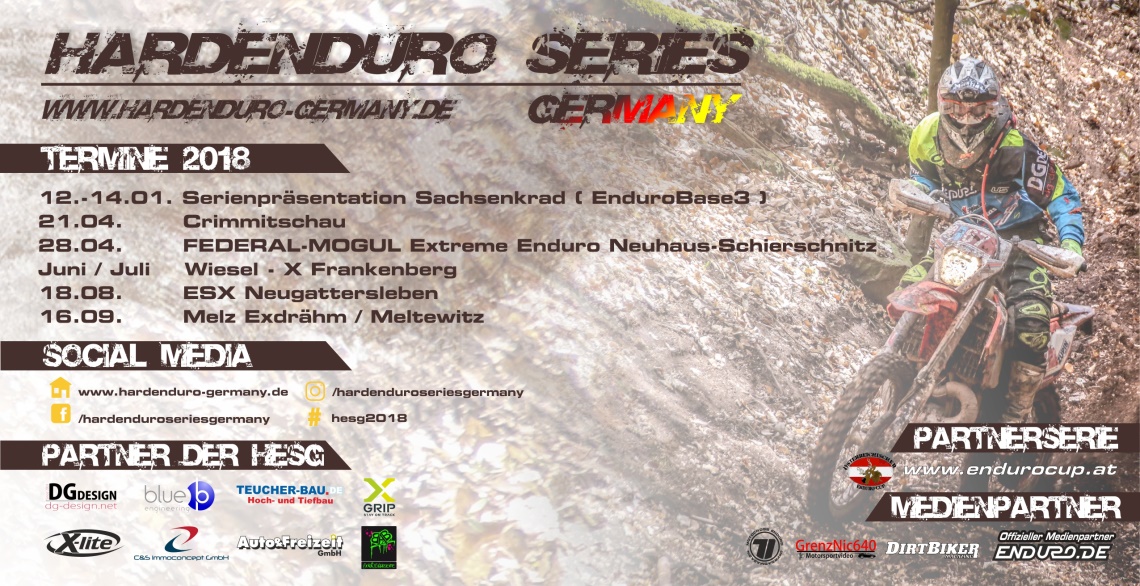 Fest stehen dafür die 4 weiteren Events, die allesamt in der Mitte von Deutschland ausgetragen werden. Der Start wird am 21.04.2018 in Crimmitschau erfolgen. Toni Pampel, selbst Starter am Erzberg und anderen Extremevents in Deutschland, wird eine anspruchsvolle Strecke in die Kiesgrube zaubern.
