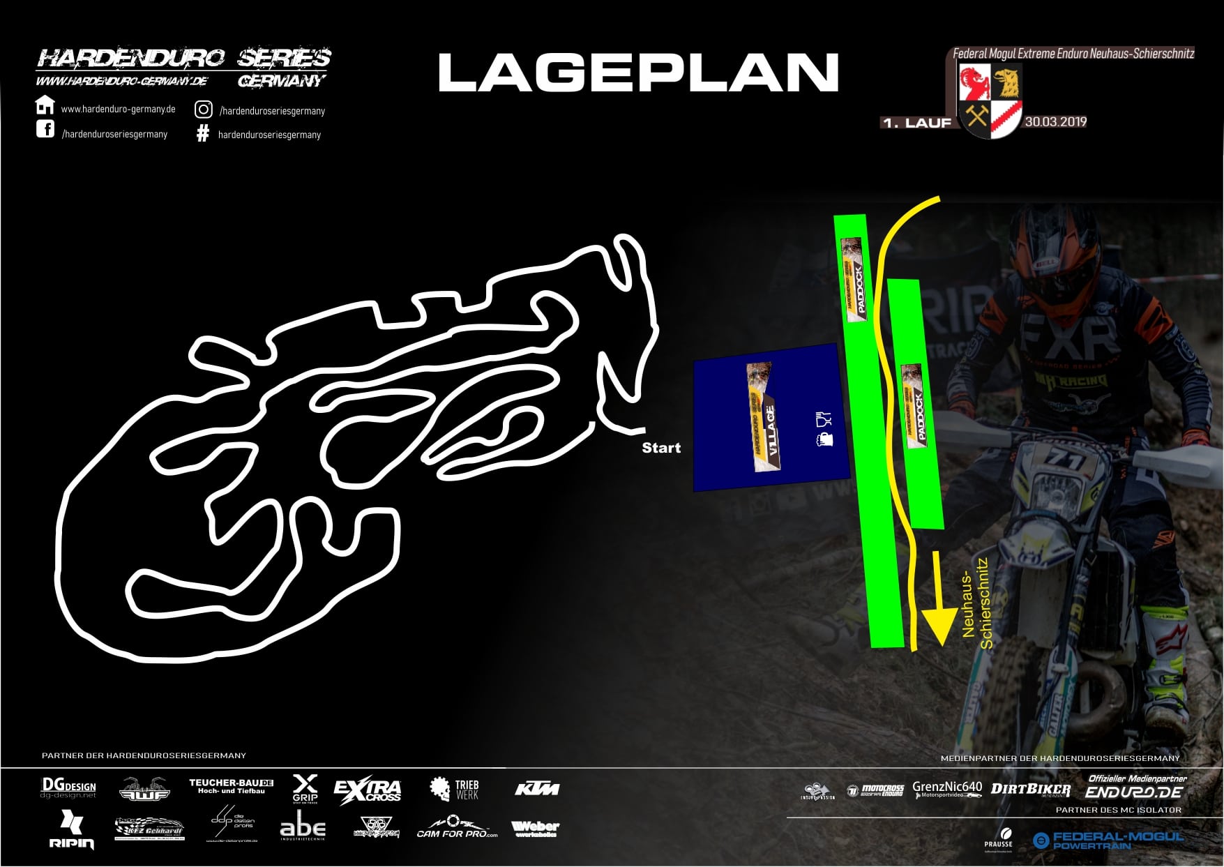 Der erste Saisonlauf der HardEnduroSeries Germany in Neuhaus-Schierschnitz wird wie im Vorjahr über den Ausscheidungsmodus augetragen. Zunächst findet ein Prolog statt, dort fährt jeder Teilnehmer eine Runde auf Zeit. Die Ergebnisse bestimmen die Gruppeneinteilungen. 3 Gruppen fahren je 1 Rennen über eine Fahrzeit von 60 Minuten. Die besten 12 Fahrer jeder Gruppe erreichen das Finale, wo auf der anspruchsvollsten Strecke des Tages um den Sieg gefahren wird.