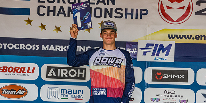 Anschließend betraten die Fahrer der 125ccm-Klasse die Bühne und hier sollte es besonders schnell werden. Henry Strauss aus Uetze, der bisher noch keinen Start im Minienduro European Cup absolviert hatte, eröffnete diese Klasse mit einer beeindruckenden Bestzeit. Doch damit nicht genug: Im zweiten Durchgang legte er noch einmal nach und war ganze vier Sekunden schneller. Mit dieser überragenden Performance geht der junge Fahrer als Führender in den morgigen Renntag.