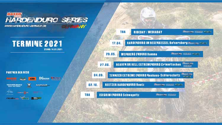Etwas verspätet zu den letzten Jahren hat die MAXXIS HardEnduroSeries Germany den Kalender für die Saison 2021 bekannt gegeben. Insgesamt sind 6 Rennen an den traditionellen Strecken der Serie geplant.