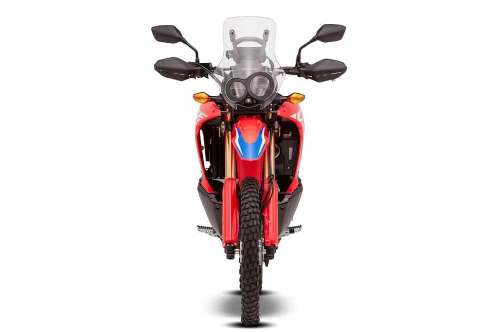 Die CRF gefällt mit einer robusten Verkleidung, die den auf 12,8 l vergrößerten Kraftstofftank beherbergt sowie mit einem bequemen, breiten Sitz. Der markante asymmetrische Doppel-LED-Scheinwerfer und das neue LC-Display runden den Look ab. Die Sitzposition wurde optimiert, um das Handling im Gelände und in der Stadt weiter zu verfeinern.