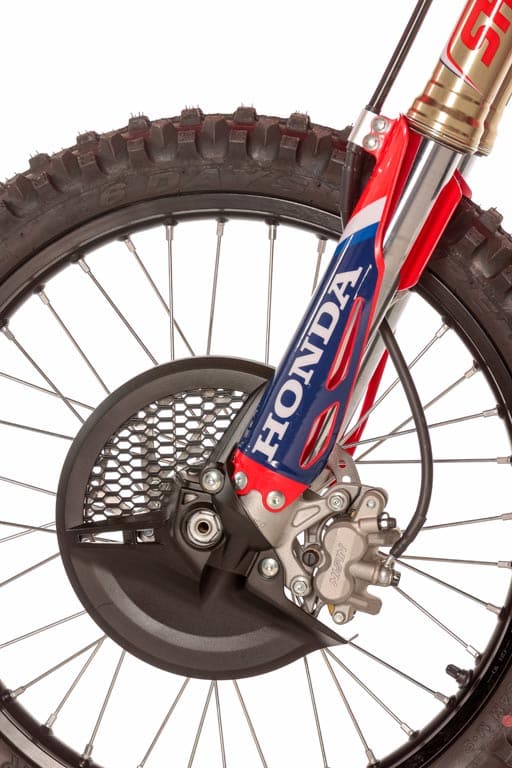- -3 kg Gewicht, dank der Erfahrung des HRC MXGP Teams, an Rahmen, Schwinge, Balance von Steifigkeit und Geometrie, für bessere Kurvenlage und erhöhten Fahrkomfort