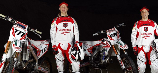 Das Honda World Motocross Team ist bereit für die kommende Saison. Am 9. April starten die beiden Honda Piloten Evgeny Bobryshev und Rui Goncalves im neuen Look in Valkenswaard zum 1. MX-WM Lauf. Vergangene Woche trafen sich die Honda Boys in Belgien zu einem gemeinsamen Fotoshooting wo am Ende ein paar tolle Schnappschüsse entstanden. Auch 2012 werden sie wieder mit One Industries Race-Gear ausrücken.