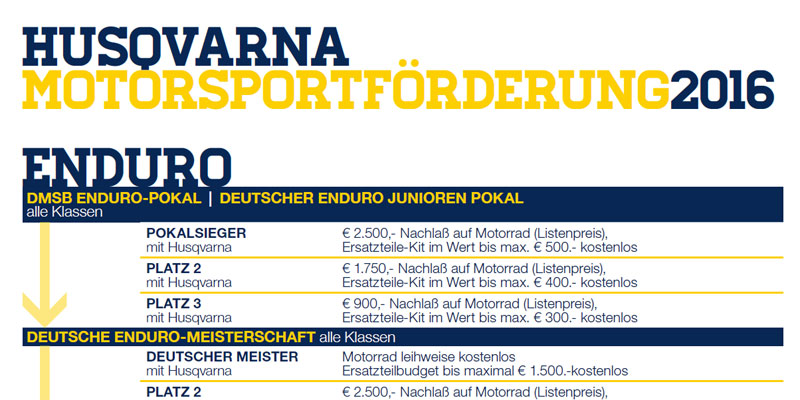 Die Husqvarna Motorsportförderung 2016 kann nur gewährt werden, wenn die offiziellen