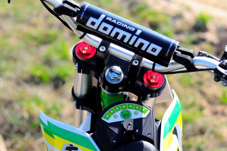 Domino Aluminium Lenker, Stahlfussrasten sowie neuen Kunststoffteilen und Design.