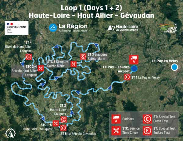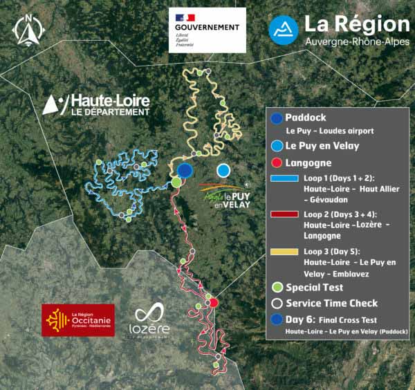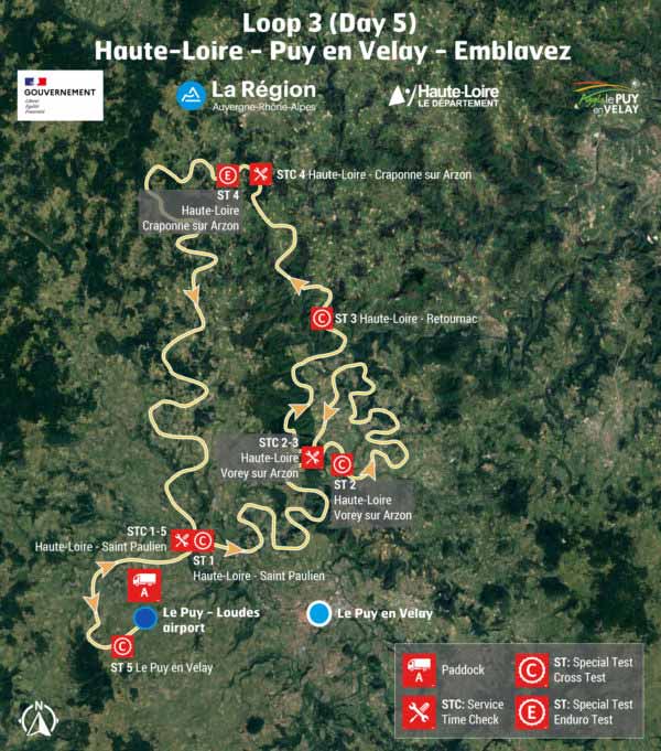 Letzte Sonderprüfung Le Puy en Velay 3 km vom Fahrerlager entfernt (Tage 3, 4, 5): Durchgang des ersten Fahrers gegen 15:00 Uhr.