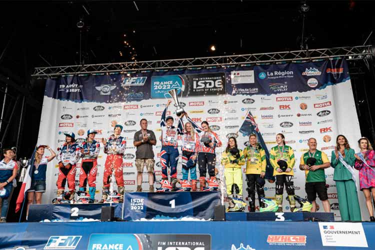 In der Endwertung der Women’s World Trophy belegte FIM ISDE-Gastgeber Frankreich den zweiten Platz. Australien schloss sich Großbritannien und Frankreich auf der letzten Stufe des Podiums als Dritter an.