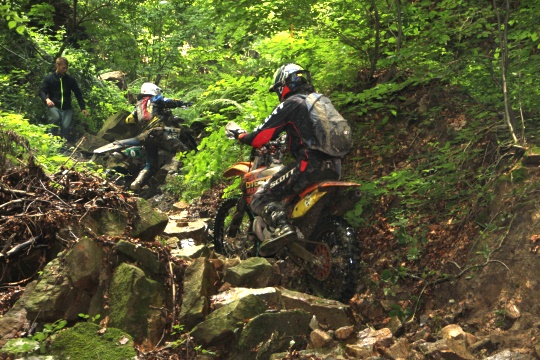 Ein enger Dreikampf bestimmte das Rennen am dritten und letzten Fahrtag des Hard Enduro Piatra Neamt. Erneut waren viele schwere Abschnitte auf den 50km langen Track. Besonders schwer war eine Bachauffahrt 40 Minuten vor dem Ziel. Dort ging nichts ohne fremde Hilfe.