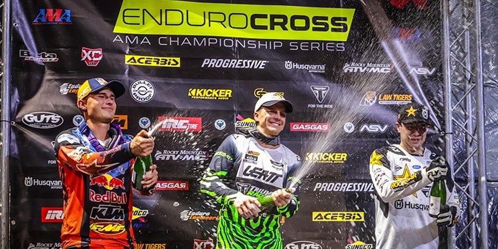 Was für ein Abend in der AMA EnduroCross Serie! In einem bis zur letzten Runde offenen Titelkampf setzte sich Jonny Walker am Samstagabend mit einem nervenstarken 1-1-2 Ergebnis im sechsten und finalen Lauf durch – und holte sich damit seinen zweiten AMA EnduroCross Champion Titel.