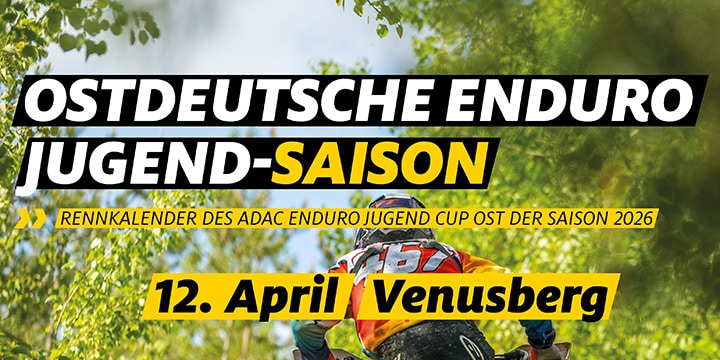 Die Nachwuchstalente des ADAC Enduro Jugend Cup Ost können sich auch 2026 auf eine spannende Saison freuen. Die mittlerweile 11. Ausgabe der beliebten Nachwuchsserie bringt eine Mischung aus legendären Enduro-Schauplätzen, langersehntem Comeback-Gelände und einem ganz neuen Austragungsort mit. Insgesamt sechs Termine von April bis Oktober sorgen für eine ausgewogene Saison, die bewusst entzerrt wurde, um den jungen Fahrerinnen und Fahrern mehr Zeit für Training, Schule und Regeneration zu lassen.