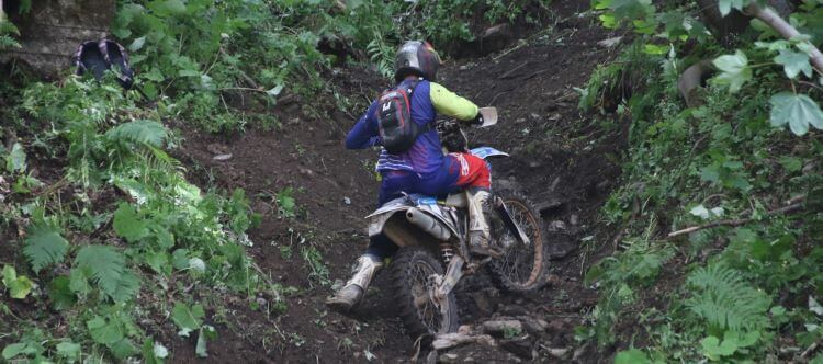 Willkürlich und in immer kürzeren Abständen starb der Motor ab. Starten, Gas geben, aus – dies war der Takt, den die Maschine für das letzte Drittel der knapp 32 km langen Strecke vorgab. Gallas war gezwungen, sein Motorrad die extrem steilen Hänge mehr oder weniger hinauf zu schieben und zuzusehen, wie die Konkurrenten einer nach dem anderen an ihm vorbei fuhren.