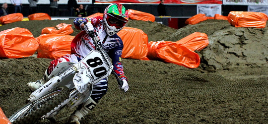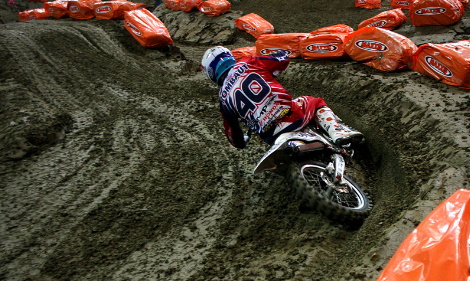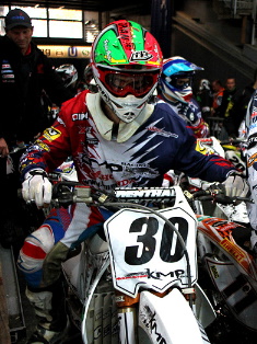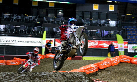 Diesen hatte trotz viel Pech Mickael Musquin auf der KMP-Honda eingefahren. Der Franzose kämpfte sich ins Freitags-Finale und zeigte dort einen starke kämpferische Leistung: „Ich war im Kopf noch nicht bereit, da ich vor drei Wochen gestürzt bin und seitdem nicht mehr auf dem Bike saß. Trotzdem habe ich es ins Finale geschafft, wo ich allerdings ziemlich schlecht startete. Von Runde zu Runde wurde ich schneller und konnte noch bis auf den fünften Rang vorfahren, womit ich sehr zufrieden war“, so Musquin. Nach diesem guten Resultat und seinen schnellen Zeiten in den Trainings ging Mickeal motiviert in den zweiten Abend: „Ich hatte ein gutes Gefühl und war auch sehr schnell, allerdings hatte ich jeweils Pech in der ersten Kurve und dann ist es schwierig noch nach vorn zu kommen. So ist es halt hier im deutschen Supercross, du kannst einen Tag ganz vorn sein und am nächsten bist du nicht mal im Finale, du brauchst immer das ganze Paket um zu gewinnen. Die beiden Tage hätten unterschiedlicher nicht sein können“, resümierte der enttäuschte Franzose, der den Sprung ins Finale nur knapp verpasste.