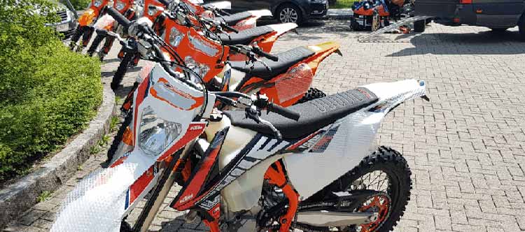 Während ihr Sommerferien macht, arbeiten wir weiter. Wir bereiten für euch die neu eingetroffenen Motorräder auf. Ab dem 31. August 2018 stehen euch folgende Modelle zur Verfügung: 250 EXC-F, 350 EXC-F, 450 EXC-F (Vier-Takter), 300 EXC TPI (Zwei-Takter), 250 Freeride (Vier-Takter). Wer am liebsten alle Modelle durchprobieren möchte, sollte gleich am ersten Septemberwochenende zum Enduro Camp nach Hohenmölsen kommen. Dort könnt ihr nicht nur die nagelneuen 2019 Bikes testen, sondern auch euer Fahrkönnen auf Vordermann bringen und an eurer Technik feilen – egal auf welchem Level ihr schon seid. Trainiert werdet ihr von erfahrenen Instruktoren auf einem weitläufigen Gelände, auf dem ihr die verschiedensten Herausforderungen vorfindet.