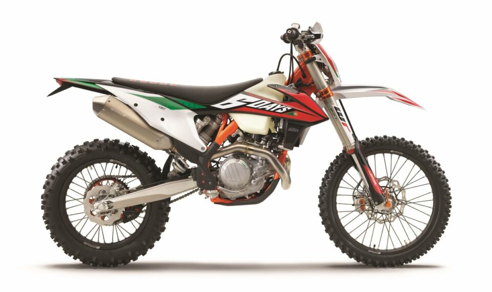 Die KTM SIX DAYS-Spitzenmodelle bieten ein umfangreiches Paket an Premium-Komponenten, was diesen in aller Welt erfolgreichen Enduros zu ihrem hervorragenden Ruf verhilft, die besten Renngeräte am Markt zu sein. Das Design der SIX DAYS-Modelle zitiert das International Six Days Enduro-Rennen und zelebriert so den Enduro-Sport mit einer breiten Auswahl an KTM PowerParts, welche sie von der Standardausstattung der KTM EXC-Modelle abheben.