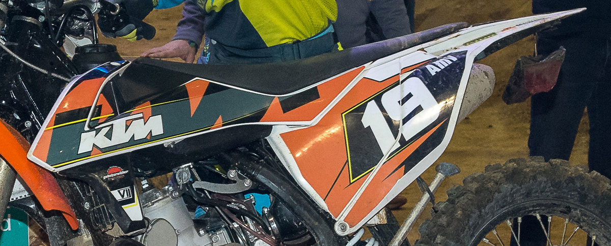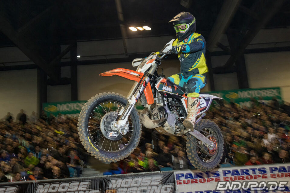 SuperEnduro in Riesa am Start. Er war mit einem KTM Prototyp am Start, wahrscheinlich mit der neuen