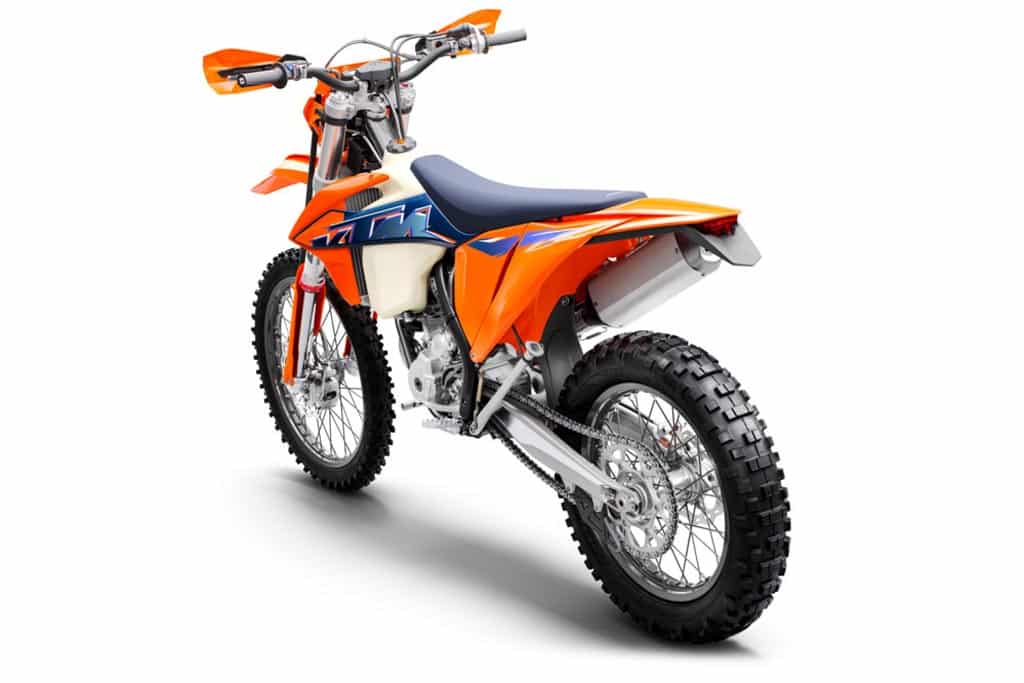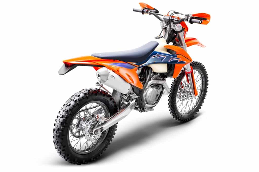 Dem KTM-Leitspruch „READY TO RACE“ liegen alle Entwicklungstätigkeiten der Marke zugrunde und Werksfahrer wie Manuel Lettenbichler und Josep Garcia helfen dabei, die KTM EXC-Modelle für alle Fahrer der Welt zu perfektionieren. Für die 2022-Modelle hat KTM die visuelle Verbindung der Bikes zu den Rennmodellen durch die verstärkte Verwendung der Farbe Blau und einer blauen Sitzbank verstärkt. Die Grafiken und Rennverkleidungen sorgen dafür, dass eine KTM EXC an der Spitze des Felds garantiert nicht zu übersehen ist.