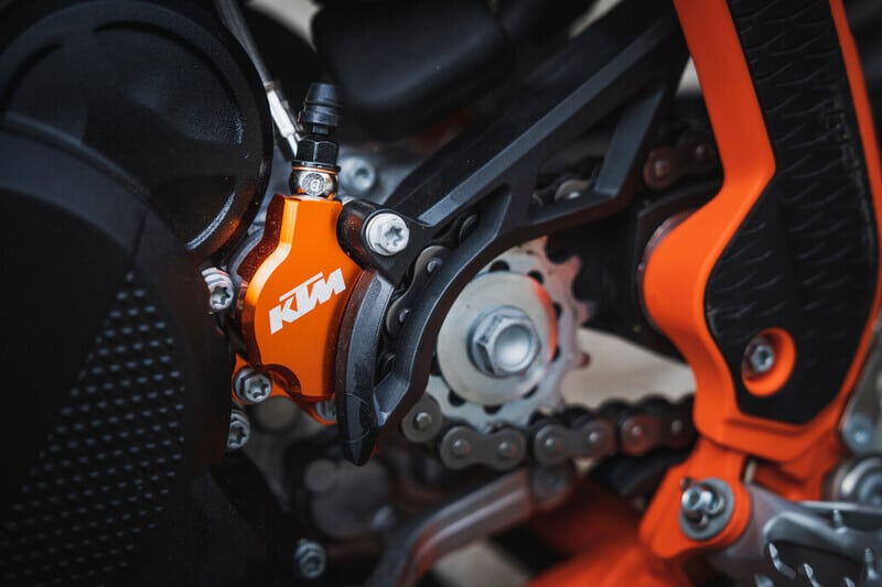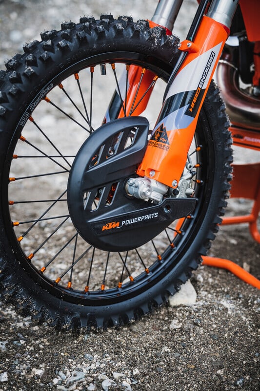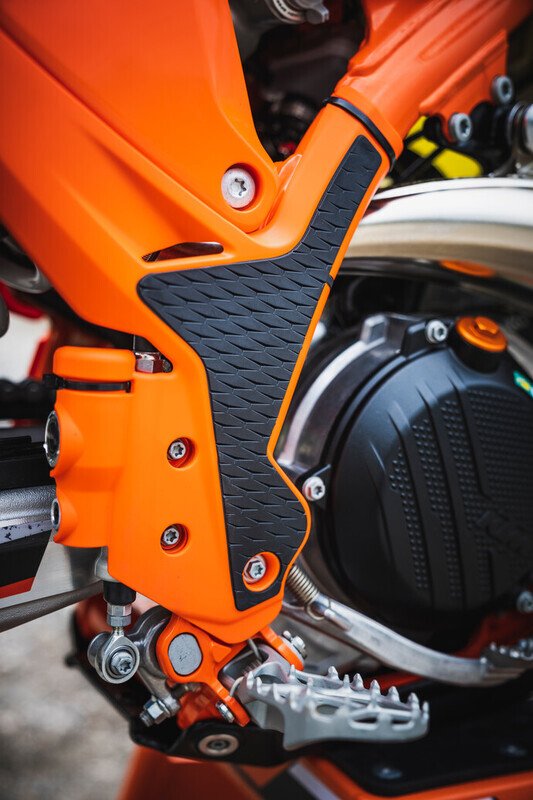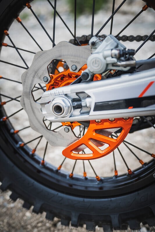 Das KTM 300 EXC Hardenduro 2024 wurde speziell für die Bewältigung anspruchsvollen Geländes entwickelt und ist mit einer Vielzahl von speziellen Schutzvorrichtungen ausgestattet. Dazu gehören geschlossener Handschutz, Schutz für den Kupplungsnehmerzylinder, Verbundmaterial-Motorschutz und Bremsscheibenschutz, die selbst extremen Rennsituationen standhalten können.