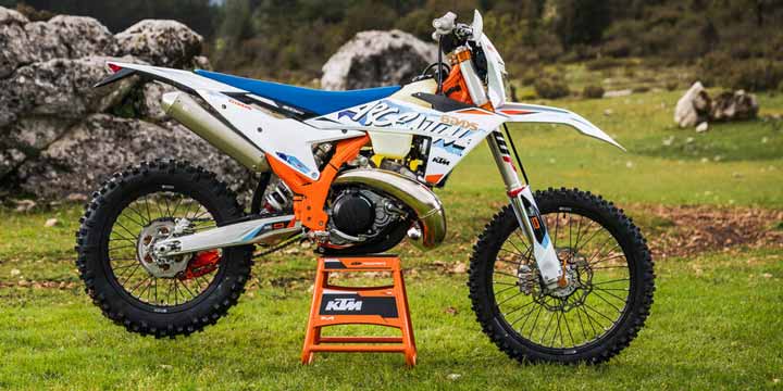 Die KTM EXC SIX DAYS-Produktpalette 2024 besticht mit der KTM 250 EXC SIX DAYS und der KTM 300 EXC SIX DAYS wieder einmal durch ihre Modellvielfalt und übernimmt die Führung bei den 2-Takt-Motoren.