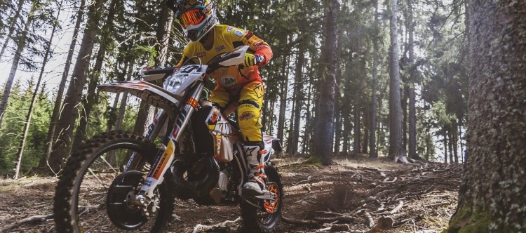 Der amtierende Enduro Staatsmeister Bernhard „Benni“ Schöpf aus Karres in Tirol vom Team KTM Walzer.Benni: „Ich konnte an beiden Tagen den Sieg einfahren, was mich natürlich sehr freut! Am Samstag musste ich etwas kämpfen da mir im ersten gezeiteten Motocross Test das Motorrad in einer Kurve abgestorben ist und ich mit 10 Sekunden Rückstand in den nächsten Enduro Test ging. Bei diesem konnte ich allerdings meine verlorene Zeit wieder aufholen und mir sogar einen kleinen Zeitpolster auf meine Verfolger heraus fahren. Der Sonntag verlief dann reibungslos und ich konnte in absolut jedem gezeiteten Test die Bestzeit einfahren. Trotz der fehlenden Motorleistung meines 250ccm Bikes, welche im Gegensatz zu den 350 und 450ccm Bikes meiner Konkurrenten vor allem bei dem Motocross Test spürbar war, konnte ich aber durch eine gute Portion Wahnsinn wieder gut machen. Man bleibt halt einfach bei Bergab Passagen und Kurven brutal lange am Gas und versucht so viel Schwung wie möglich mitzunehmen. Jeder Fahrfehler der Schwung kostet, schlägt sich mit einem kleinen Hubraum sofort auf die Rundenzeit nieder. Alles in allem bin ich aber sehr mit dem Ergebnis zufrieden! Es waren zwei Lange Tage mit über sieben Stunden Fahrzeit pro Tag, aber es hat mir trotzdem viel Spaß gemacht!“