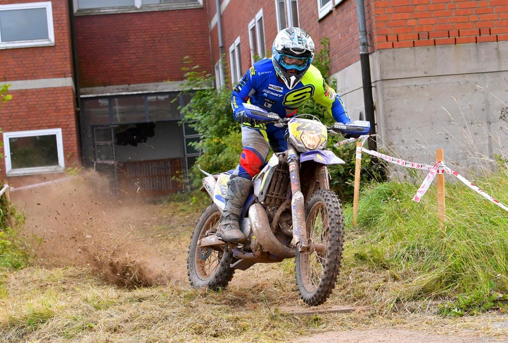 Doch bis dahin ist er zunächst noch bei der Internationalen Deutschen Enduro Meisterschaft in Rehna und Burg gefordert. Nach der Doppelrunde in Meltewitz und dem Lauf in Waldkappel liegt Luca voll im Soll. „Das Sprint-Enduro in Meltewitz mit der technisch anspruchsvollen Sonderprüfung hat mir extrem Spaß gemacht. Jeweils mit Platz zwei im Championat hinter Hamish und den Tagessiegen in meiner E3-Klasse habe ich an diesem Wochenende das Optimum herausgeholt“, freut sich der Fahrer von der Sherco Academy Deutschland. Auch in Waldkappel wusste er zu überzeugen. „Die Acker-Tests sind nicht so mein Ding, das gebe ich offen zu. Aber ich finde gut, dass es mal eine neue Prüfung gab, vor allem die Abschnitte zwischen den alten Häusern fand ich richtig gut.“ Mit Rang drei im Championat und einem weiteren E3-Klassensieg unterstrich er abermals sein ganzes Können. „Vor allem bin ich happy, dass ich auch konstant gute Leistungen auf solchen Strecken abrufen kann, die mir nicht so liegen. Von daher, so kann es gern weitergehen“, strahlt der Fahrer vom MSC Dahlen e.V. über das ganze Gesicht!