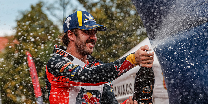 Am Samstag standen Lettenbichler nur noch 100 Kilometer zwischen ihm und seinem fünften Sieg bei den Red Bull Romaniacs. Ein solider dritter Platz am letzten Offroad-Tag reichte aus, um seinen Gesamtsieg mit einem Vorsprung von 33 Minuten und 22 Sekunden zu sichern. Mit einer souveränen Leistung auf dem ikonischen letzten Anstieg erklomm Lettenbichler das Podium und übernahm die Führung in der Gesamtwertung der Meisterschaft.