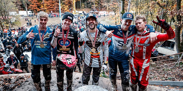 Bereits in der fünften Runde in Spanien als FIM Hard Enduro Weltmeister gekrönt, setzte das Red Bull KTM Factory Racing Team mit einem ungeschlagenen Jahr 2023 ein beeindruckendes Statement. Lettenbichler sicherte sich den Sieg beim 24MX GetzenRodeo und beendete die Saison 2023 der HEWC ungeschlagen. Im FIM Hard Enduro Junior World Championship, unterstützt von KLIM, holte sich Mitch Brightmore von TTR Squadra Corse den Weltmeistertitel.