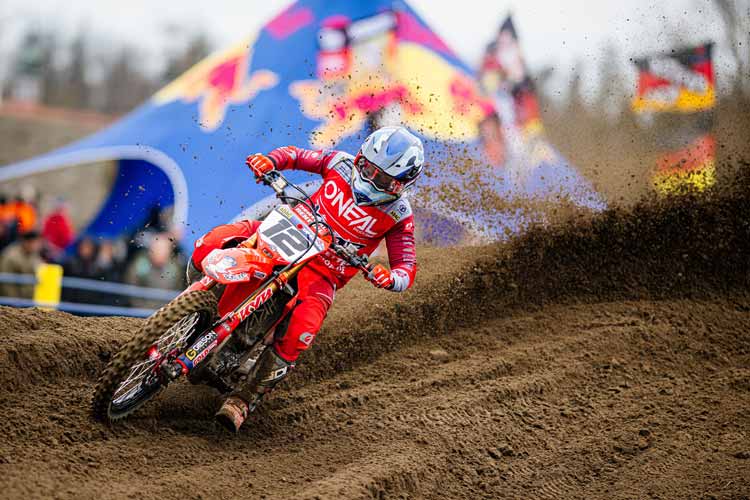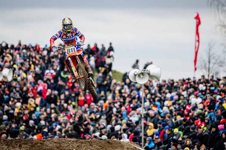 Max Nagl wechselte für diese Saison sowohl die Motorradmarke als auch das Rennteam, spurtete jedoch beim Auftaktrennen am Samstagnachmittag gewohnt stark aus dem Startgatter. Mit dem Red Bull Holeshot legte er den Grundstein zum ersten Laufsieg des Jahres. Serien-Rückkehrer Henry Jacobi (D/KTM Sarholz Racing Team) konnte Nagl das gesamte Rennen lang folgen, jedoch bis ins Ziel keinen Angriff starten. Tom Koch setzte sich mit etwas Abstand schnell auf die Verfolgerposition hinter dem Spitzenduo und wurde ungefährdeter Dritter. Mark Scheu (D/Sixty Seven) zeigte ein starkes Rennen und lag bis zur Rennmitte auf dem vierten Rang, bevor er zunächst von Michael Sandner (A/HTS KTM) und dann vom ADAC Stiftung Sport-Förderpiloten Maximilian Spies aus den Top-Fünf verdrängt wurde. Der zweifache ADAC MX Masters-Champion Jordi Tixier (F/KMP Honda Racing powered by Krettek) musste das Rennen vorzeitig mit einem gebrochenen Hinterrad beenden.