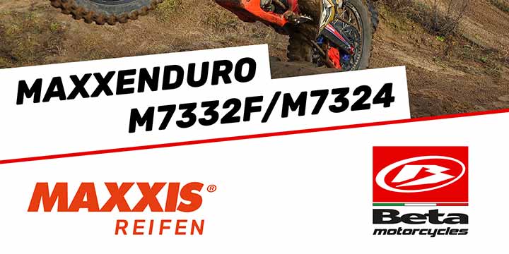 Der MAXXENDURO Reifen ist bundesweit bei vielen Beta-Enduro-Händlern erhältlich und wird serienmäßig auf allen 2022er Beta-RR-Enduro-und RR-Racing-Modellen zu finden sein.