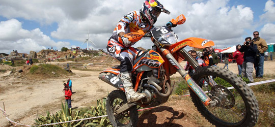 mit seiner 300er Werks-KTM der Konkurrenz weit davon fährt.