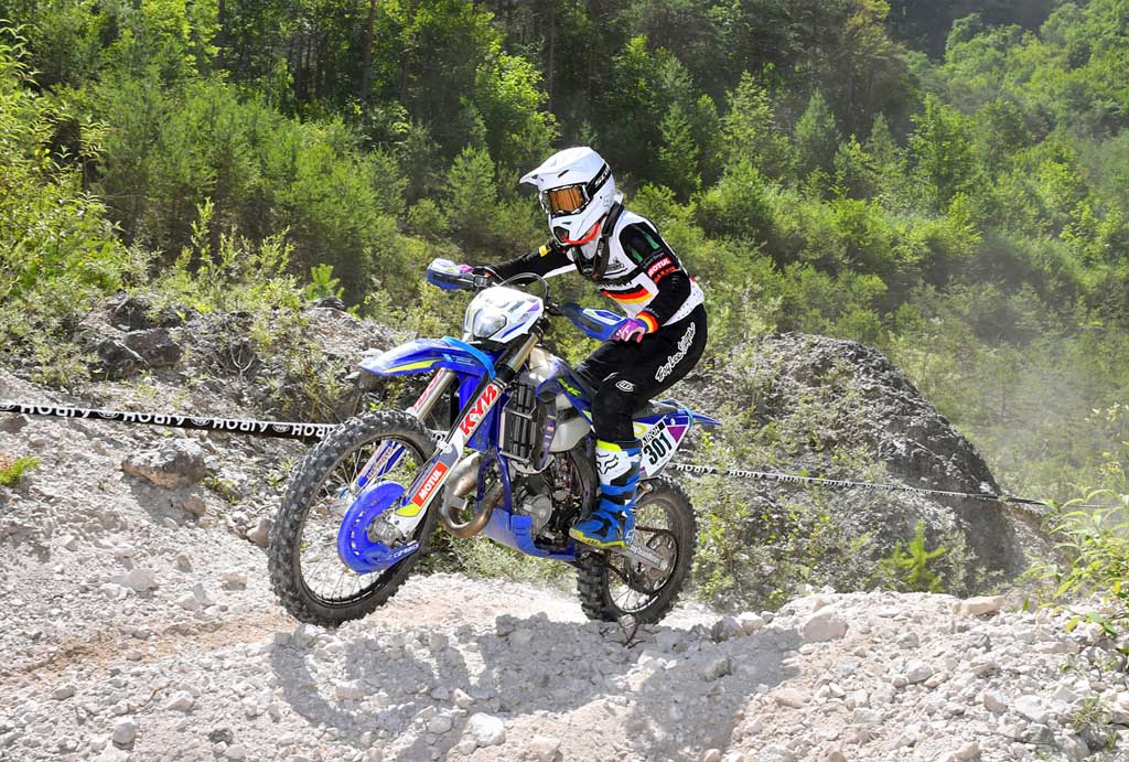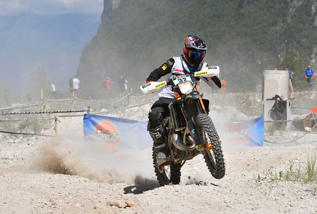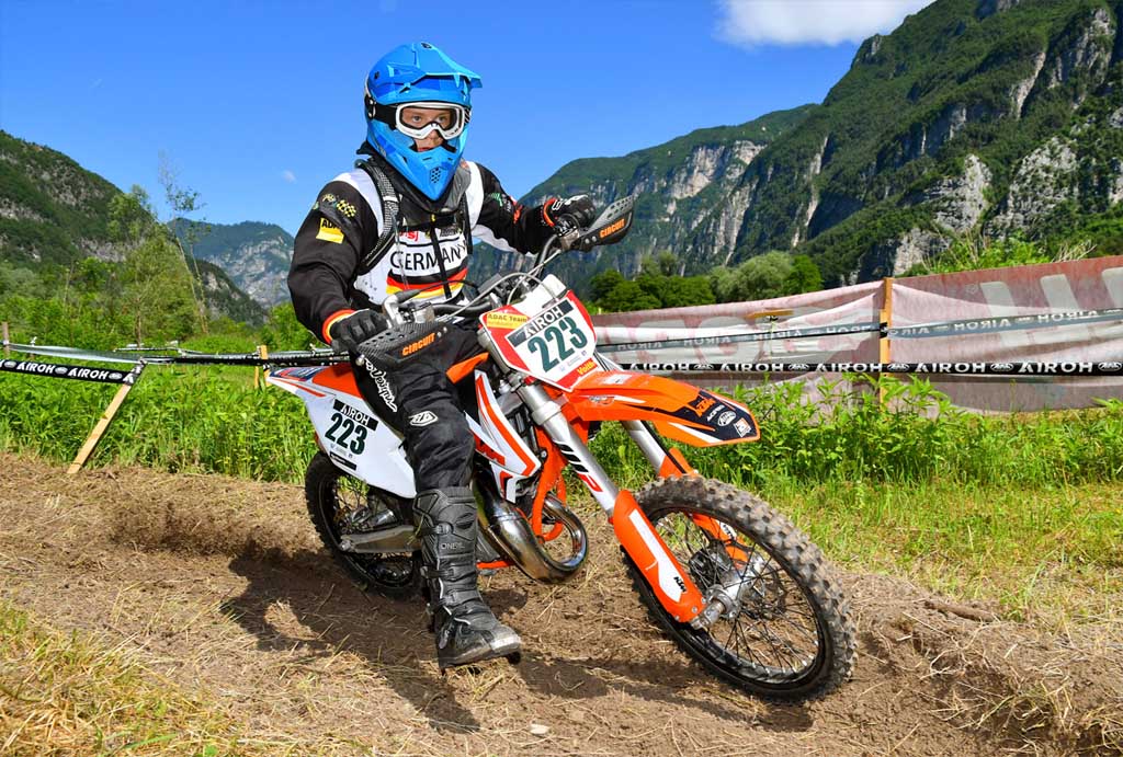 Die erste Minienduro-Trophäe wurde in der malerischen Gemeinde Grigno in der Region Trento-Südtirol vergeben. Der gastgebende Moto-Club Civezzano hat keine Kosten und Mühen gescheut, um ein hochwertiges, gut organisiertes und respektgebendes Ereignis zu schaffen. Bereits am Freitagabend war die Atmosphäre bei der Präsentation der verschiedenen Länder hochkarätig. Die 15 Kilometer lange Strecke mit ihren zwei Sonderprüfungen – jeweils ein Cross- und Enduro-Test – sowie einer herausfordernden Auffahrt und einer noch trickreichen Abfahrt setzte neue Maßstäbe. Gegenüber den Jugend-Enduro-Events in Deutschland war dies ein deutlich größerer Brocken. Zudem mussten die jungen Athleten an beiden Wettbewerbstagen fünf Runden absolvieren, was bedeutete, dass sie weit über fünf Stunden, wenn auch mit ausreichend Servicezeit, bei teilweise sehr warmen Temperaturen unterwegs waren. Besonders herausfordernd war auch der typisch italienische Untergrund, der mit unzähligen Steinen in unterschiedlichen Formen und Größen übersät war. Daher war es nicht überraschend, dass die heimischen Fahrer zunächst das Feld anführten, während am zweiten Tag die internationale Konkurrenz immer besser in Fahrt kam. Am Ende des Wochenendes wurde Léo Lavesvre aus Frankreich als schnellster Fahrer geehrt und gewann auch die Gesamtwertung in der Klasse 125ccm. Charlène Boudon entführte den Titel in der Mädchen-Klasse ebenfalls nach Frankreich, während Cristian Garzotto (50 ccm – Großrad) und Gioele Scibilia (85 ccm) ihre italienischen Fans jubeln ließen.