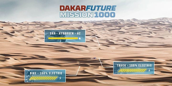 „Mission 1000“ ist ein revolutionäres Konzept, das während der Dakar 2023 vorgestellt wird. Es umfasst einen 100 km langen Abschnitt, der sich insgesamt auf 1.000 km summiert und separat von den herkömmlichen Etappen der Rallye verläuft. Hierbei geht es darum, die Grenzen der Spitzentechnologie zu testen. Die Teilnehmer können auf diesem Weg herausfinden, welche technischen Innovationen zukunftsträchtig sind.