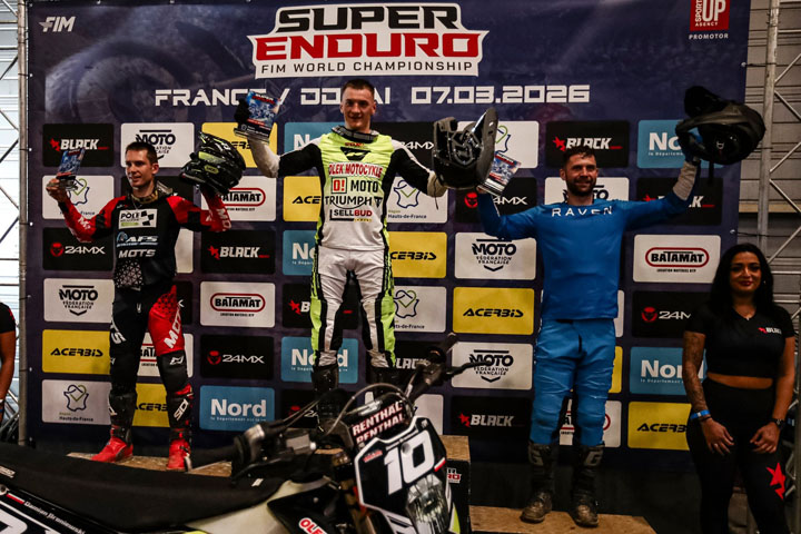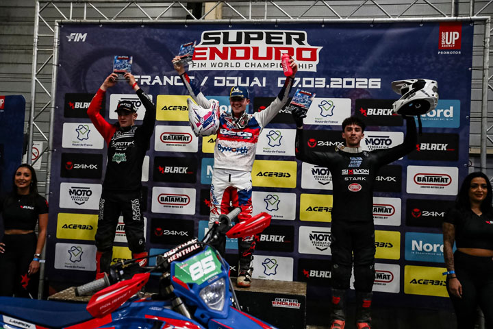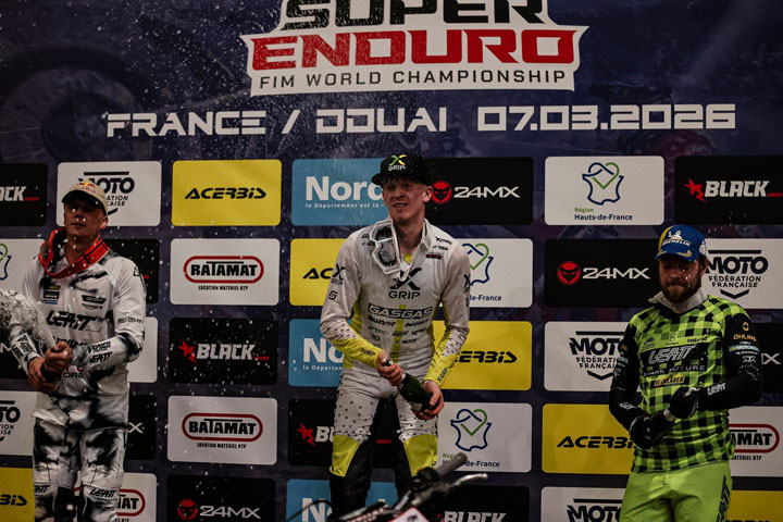 Das große Saisonfinale der FIM SuperEnduro World Championship 2025/2026 in Douai bot noch einmal alles, was die Indoor-Enduro-Serie ausmacht: spektakuläre Überholmanöver, dramatische Rennen und neue Sieger. Beim siebten und letzten Lauf setzte sich Mitch Brightmore durch und feierte seinen ersten Grand-Prix-Gesamtsieg in der Prestige-Klasse.