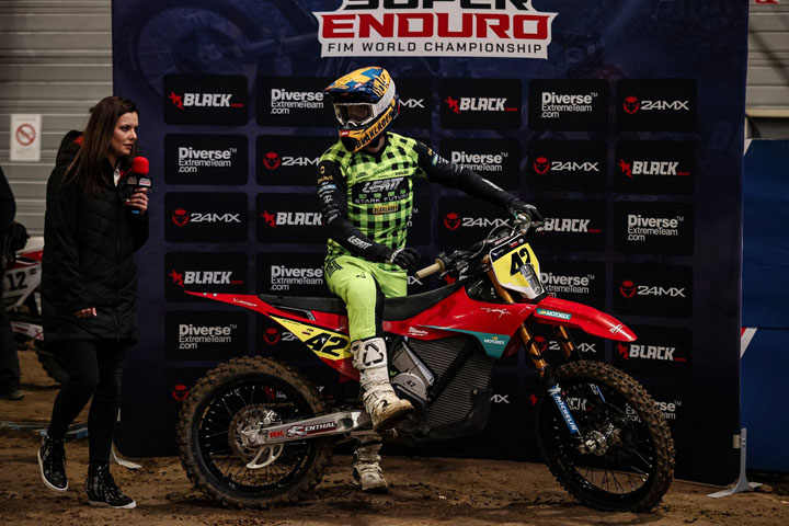 Der Abend begann mit einer kleinen Sensation: Eddie Karlsson setzte in der SuperPole die Bestzeit – und schrieb damit Geschichte. Es war der erste SuperPole-Sieg für ein Elektro-Motorrad im SuperEnduro.