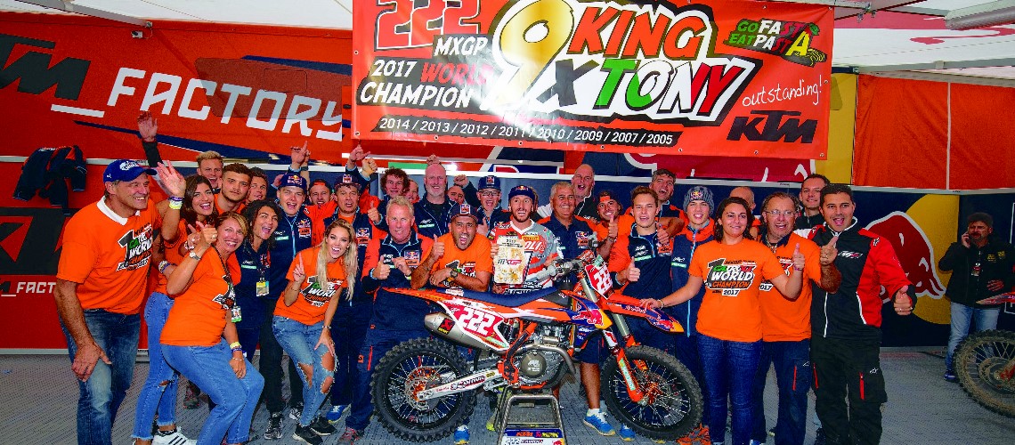 Pit Beirer (Motorsport-Direktor): „Wieder einmal hat die Cairoli-KTM-Kombination uns einen besonderen Moment in unserer langen Motocross-Historie beschert. Dieser Titel ist das Ergebnis der harten Arbeit, die viele Leute investieren. Tonys Saison war fantastisch anzuschauen mit vielen Highlights und er hat bewiesen, dass er immer noch die Referenz in dieser Klasse ist und ein Vorbild für alle Kinder, die eines Tages die Spitze in diesem Sport erreichen wollen. Auch Jeffrey hat starke Leistungen gezeigt und insgesamt hätte die Saison 2017 für uns kaum besser laufen können. Schon bald werden wir uns Gedanken über die Saison 2018 machen, aber das gesamte Team verdient es, diesen Titel zu genießen.“