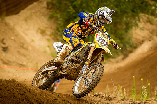 Jeremy Seewer fuhr wie immer mit der RM-Z250 des Rockstar Energy Suzuki Europe Teams gegen die stärker motorisierte Konkurrenz. Ein Nachteil, der sich vor allem im tiefen Sand bemerkbar machen sollte. Doch Seewer legt klare Priorität auf die MX2-Weltmeisterschaft und möchte nicht während der Saison das Motorrad wechseln. Der Schweizer konnte zwar schnelle Rundenzeiten markieren, zog jedoch im direkten Vergleich zur stärker motorisierten Konkurrenz oft den Kürzeren. „Mit der 450er kann man im Sand oft ganz andere, viel direktere Spuren fahren“, schilderte Teammanager Thomas Ramsbacher den größten Vorteil der hubraumstärkeren Motorräder. „Das hat Jeremy in den Zweikämpfen zu schaffen gemacht. Aber er ist gut gefahren und hat sich bei dem Rennen auch optimal auf den WM-Lauf in Lommel vorbereiten können.“