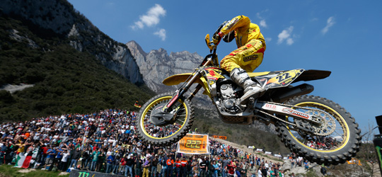 Im ersten Lauf steuerte Clement Desalle seine RM-Z450 vor 23000 Fans im Schatten der