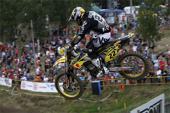 Kevin Strijbos (Team Rockstar Energy Suzuki) erwischte einen guten Start ins erste Rennen und ging direkt hinter seinem Teamkollegen Clément Desalle in die erste Runde. Die beiden Werkssuzukis umrundeten den Kurs in Führung liegend ehe Strijbos in der vierten Runde das Tempo anzog und die Spitze übernahm. „Ich habe mich fantastisch gefühlt“, bestätigte der Belgier seine grandiose Form. „Ich konnte vorbei gehen und schnell genug fahren um mir den Sieg zu sichern.“ Rennen zwei war etwas schwieriger für den 28-Jährigen. Strijbos lag von Beginn an auf Rang 3 und hatte Probleme sich nach vorne zu verbessern. „Es war sehr schwer zu überholen“, schilderte Strijbos. „Aber als van Horebeek an Cairoli vorbei ging witterte ich meine Chance und startet ebenfalls einen Angriff. Ich war sehr nahe an Cairoli dran, aber es hat leider nicht gereicht. Trotzdem freue ich mich natürlich über den zweiten Platz auf dem Podium!“