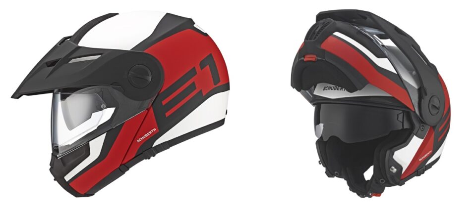 Der neue Schuberth E1 bietet den Komfort, die Flexibilität und die Sicherheit eines modernen Klapphelms und erfüllt gleichzeitig die besonderen Anforderungen für den Offroad-Einsatz. Damit bietet Schuberth erstmals einen Helm speziell für die Nutzung auf Reise-Enduros und Adventure Bikes an.