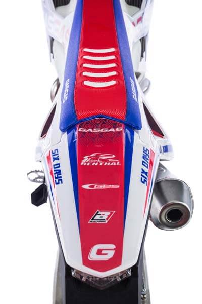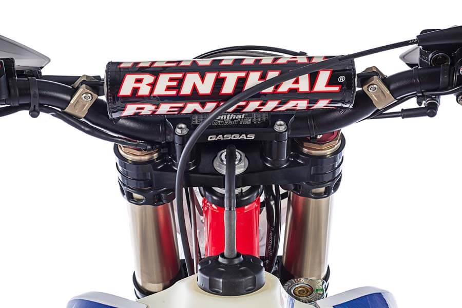 Die neue GasGas SixDays kommt mit einem Renthal Lenker inkl. Mittelstrebe und Polster, sowie Griffgummis ebenso von Renthal. Das Modell ist weltweit auf 400 Stück begrenzt.