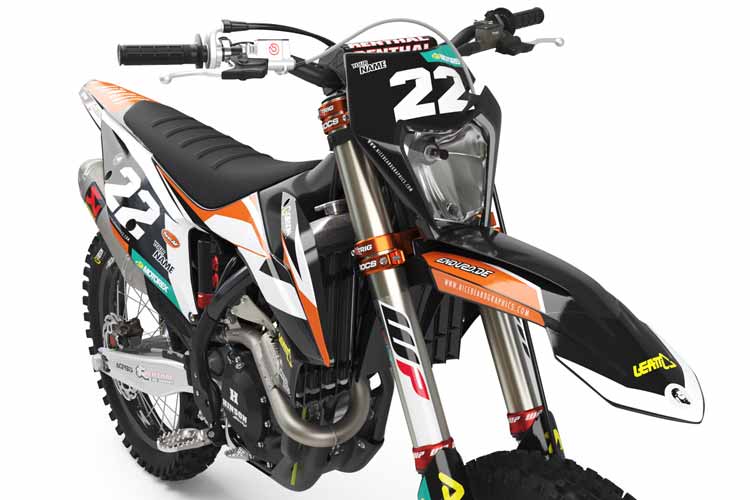 Nachdem Offroad-Fans endlich wieder Ihre Motorräder auf den meisten MX- und Enduro-Strecken Deutschlands bewegen dürfen, hat auch der Dekor-Hersteller “NiceBeardGraphics” ein neues Design im Gepäck. Mit dem neuen “Leader Dark” Dekor für KTM Modelle, finden Fans des Herstellers eine optisch ansprechende Alternative für die Standard-Dekore von KTM. Egal ob SX oder EXC – das „Leader Dark“ Dekor ist für viele KTM Modelle ab Baujahr 1993 verfügbar. Ganz egal ob man schwarze, weiße oder OEM Plastikteile hat – dadurch das man unter anderem die Farben individuell anpassen kann, wird das Dekor immer zum Bike passen. Das Dekor wird in der Standard-Konfiguration mit unserem Enduro.de-Logo auf dem Front-Kotflügel ausgeliefert.