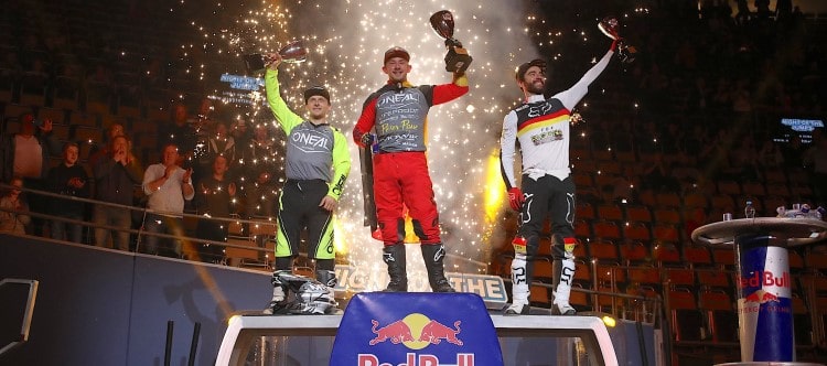 Mit der Unterstützung der Münchener Crowd wusste der deutsche FMX Terminator aber zu kontern: Holygrab to 1 Hand Lander, Frontflip, Seatgrab Flip, Flair, 360, Egg Roll, Surfer Tsunami Flip, Clicker to Superflip, Double Backflip und der Double Backflip Nac Nac ließen die Halle komplett eskalieren.