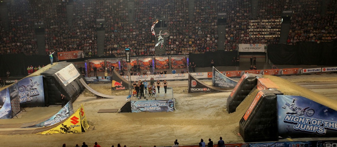 Seit 2011 gastiert die NIGHT of the JUMPs in München. Jeweils am letzten April-Wochenende strömen bis zu 10.000 Besucher in die Olympiahalle, um die weltbesten Freestyle Motocross Athleten mit ihren verrücktesten Tricks zu sehen.